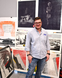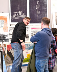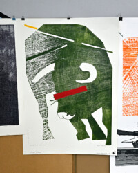 Na Targowisko Sztuki przywiozłem kilka prac, które wcześniej nie miały szansy ponownie się pokazać. I tak: jest nowa wersja Corridy: koniec przedstawienia, nowa wersja Grande Arche 2 oraz zupełnie nowe odbitki Pieśni Rzeki.